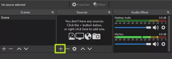 Step 1: Once you have downloaded and installed the OBS tool, now to add a new source, click on the + icon under the sources section.