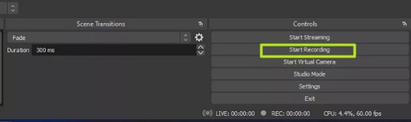 Step 3: Now, in the lower right corner of the interface, there’s a controls section click on the Start recording button option there to begin recording.